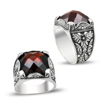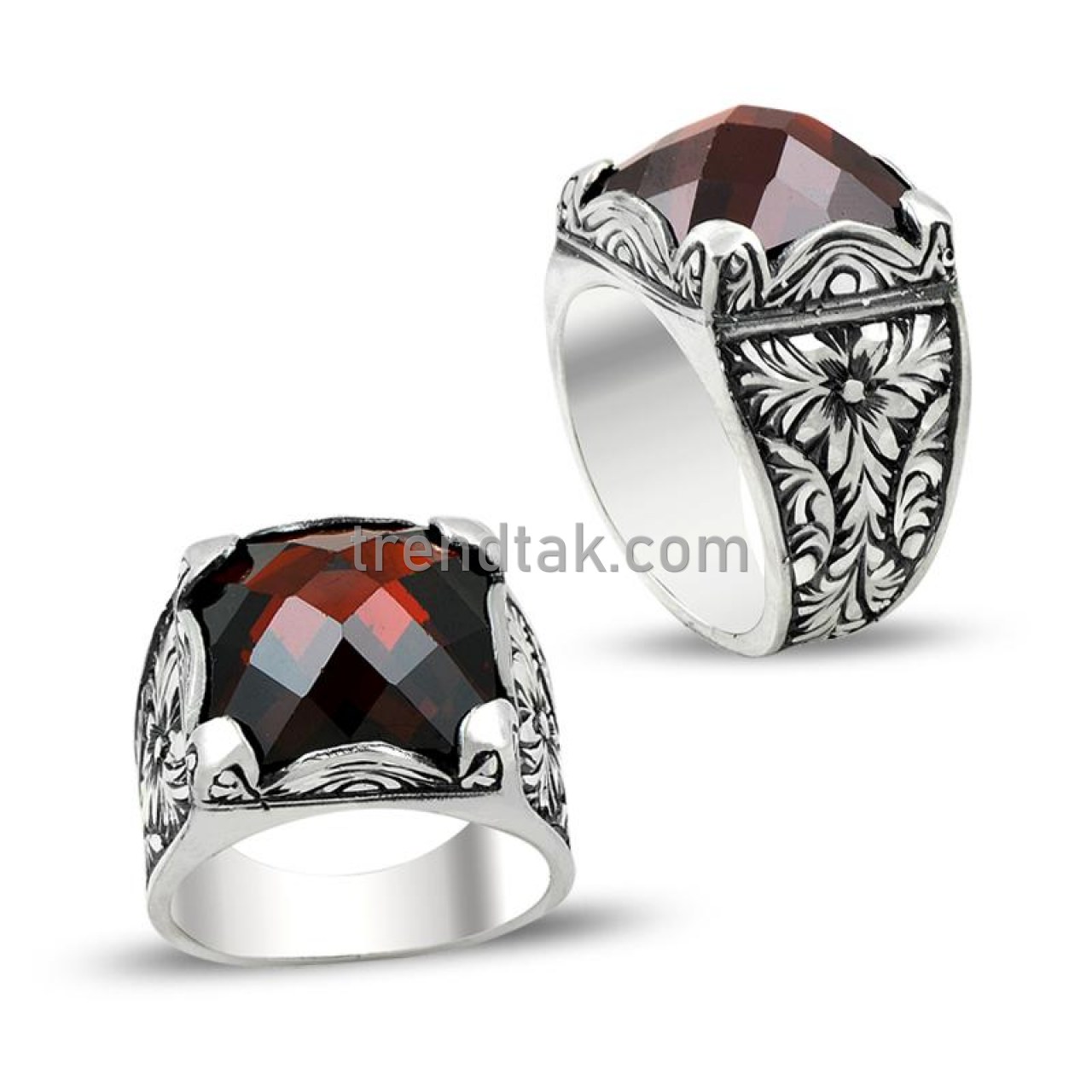 İşleme : Erzurum el kalem işçiliği kırmızı zirkon taşlı gümüş yüzük 1