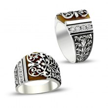 İşleme : Erzurum el kalem işçiliği sıkma kehribar 2 gümüş yüzük
