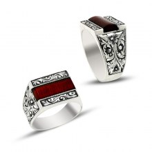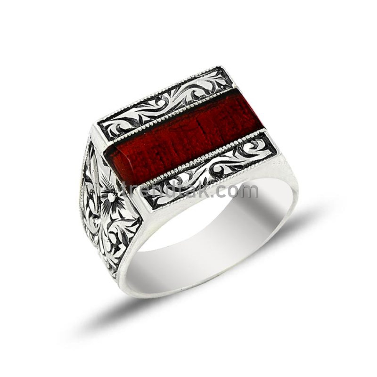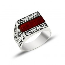 Taş : Yanları el kalemi ile işlenmiş bordo taşlı yüzük