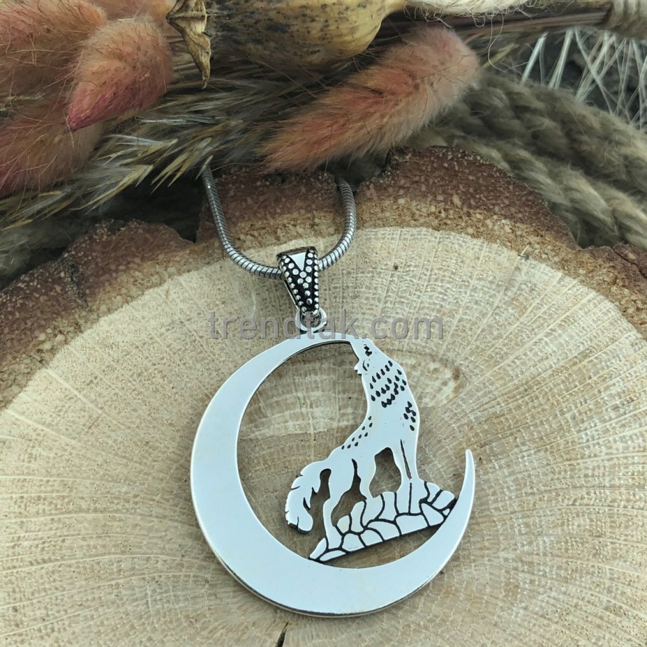 Trendtak Ay ve Bozkurtlu Gümüş Kolye Ucu
