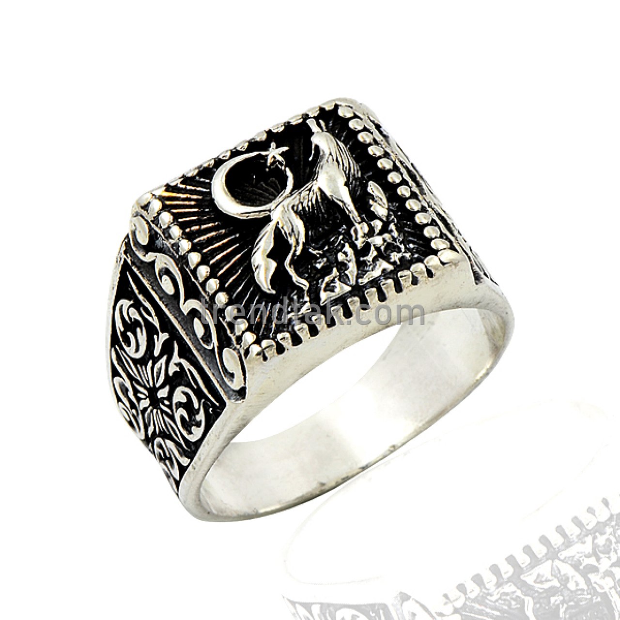 İşleme : Trendtak ayyıldız ve kurt desenli erkek gümüş yüzük