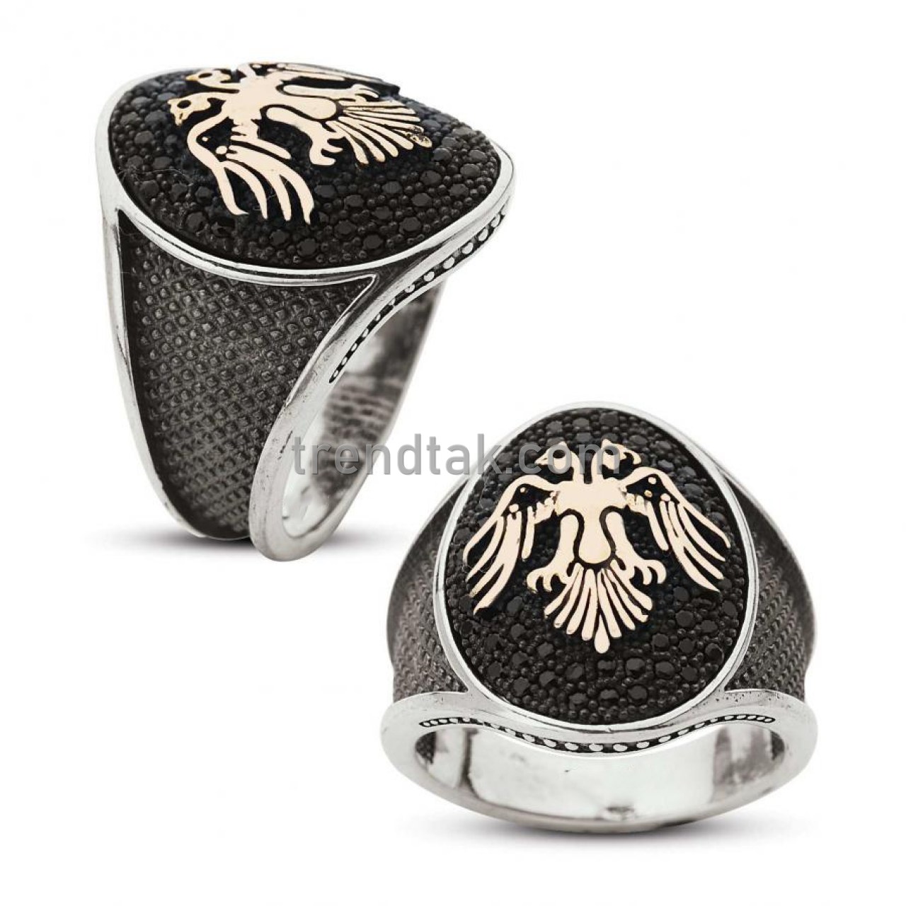 İşleme : Trendtak çift başlı kartal zirkon erkek gümüş yüzük