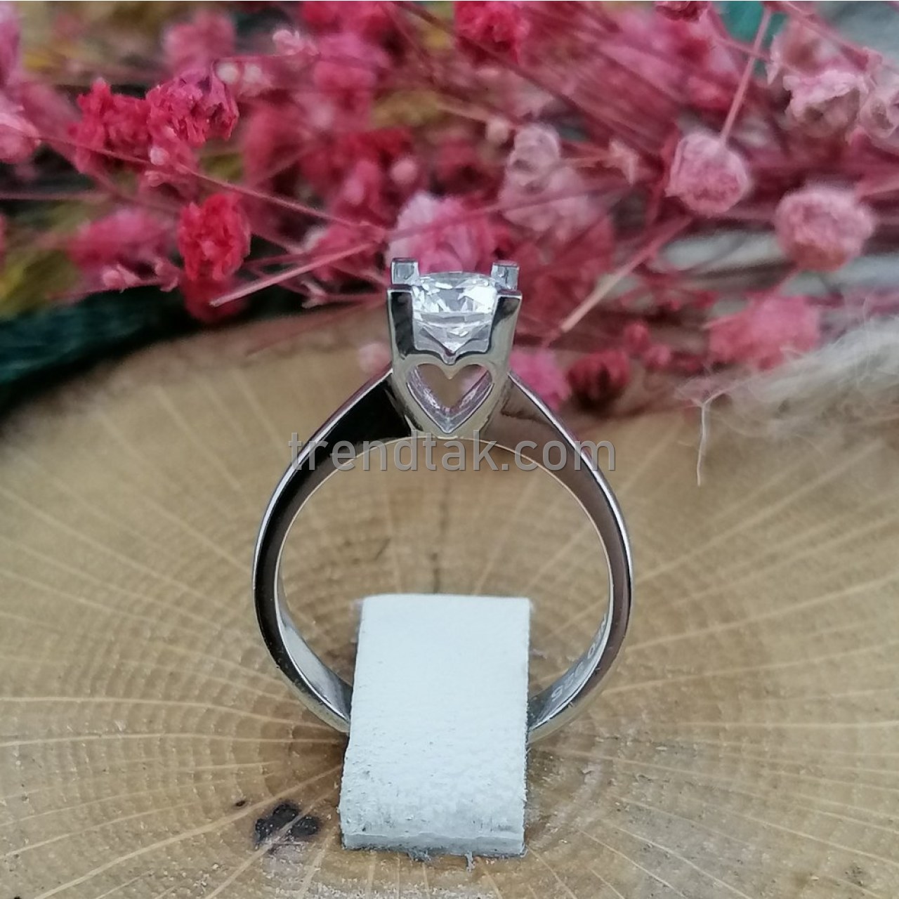 Trendtak Kalp Desenli Gümüş Tektaş Yüzük