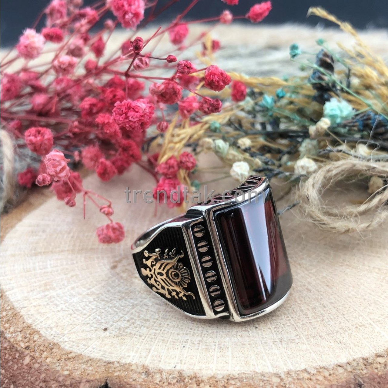 Trendtak Kare Tuğralı Gümüş Erkek Yüzük