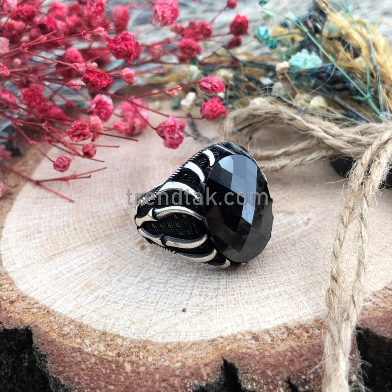 Trendtak Kılıç Desenli Taşlı Gümüş Erkek Yüzük
