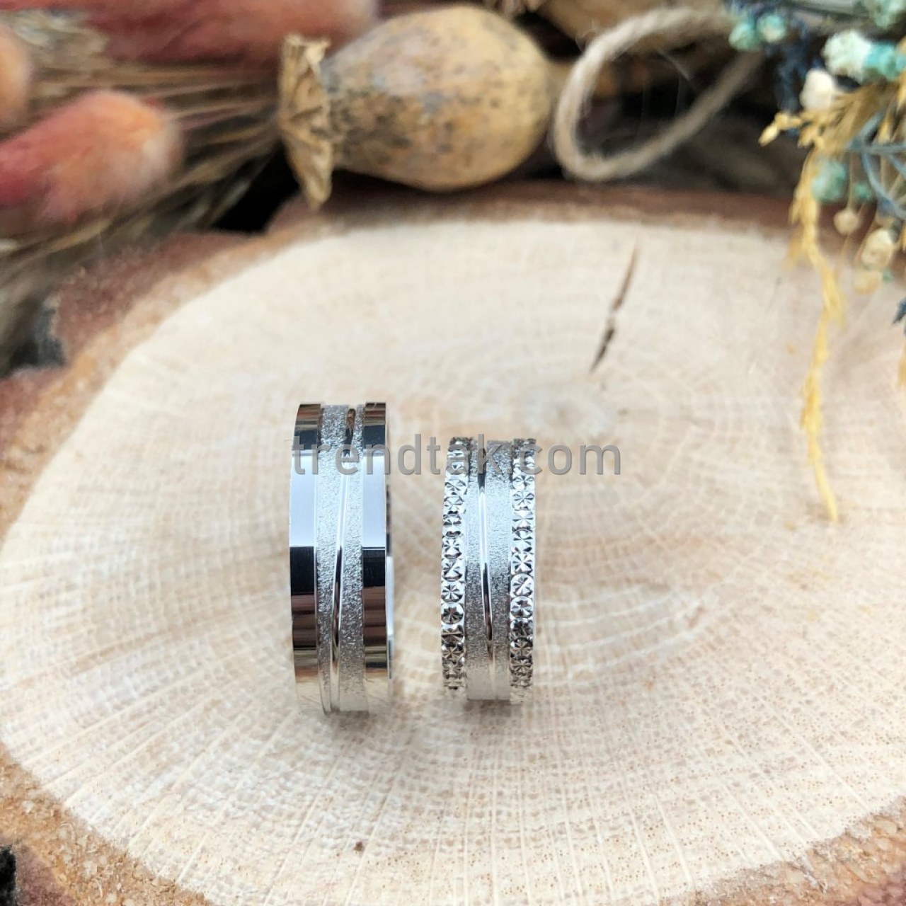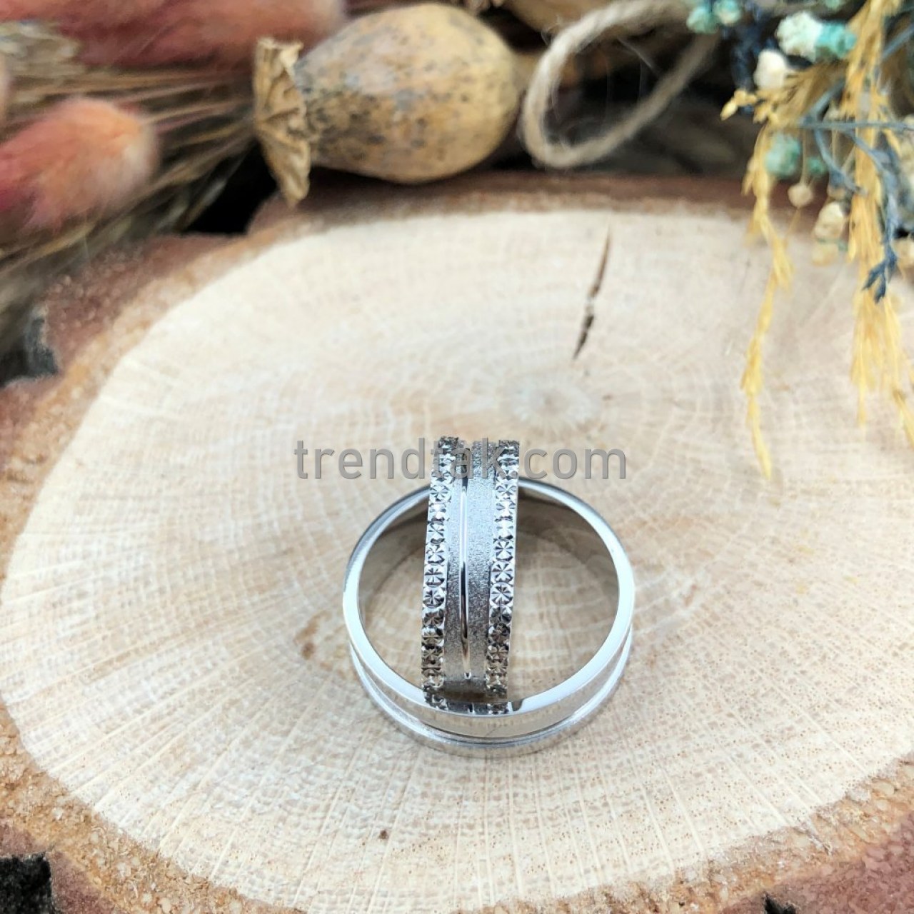 Trendtak Kum Mat Simetri Gümüş Alyans